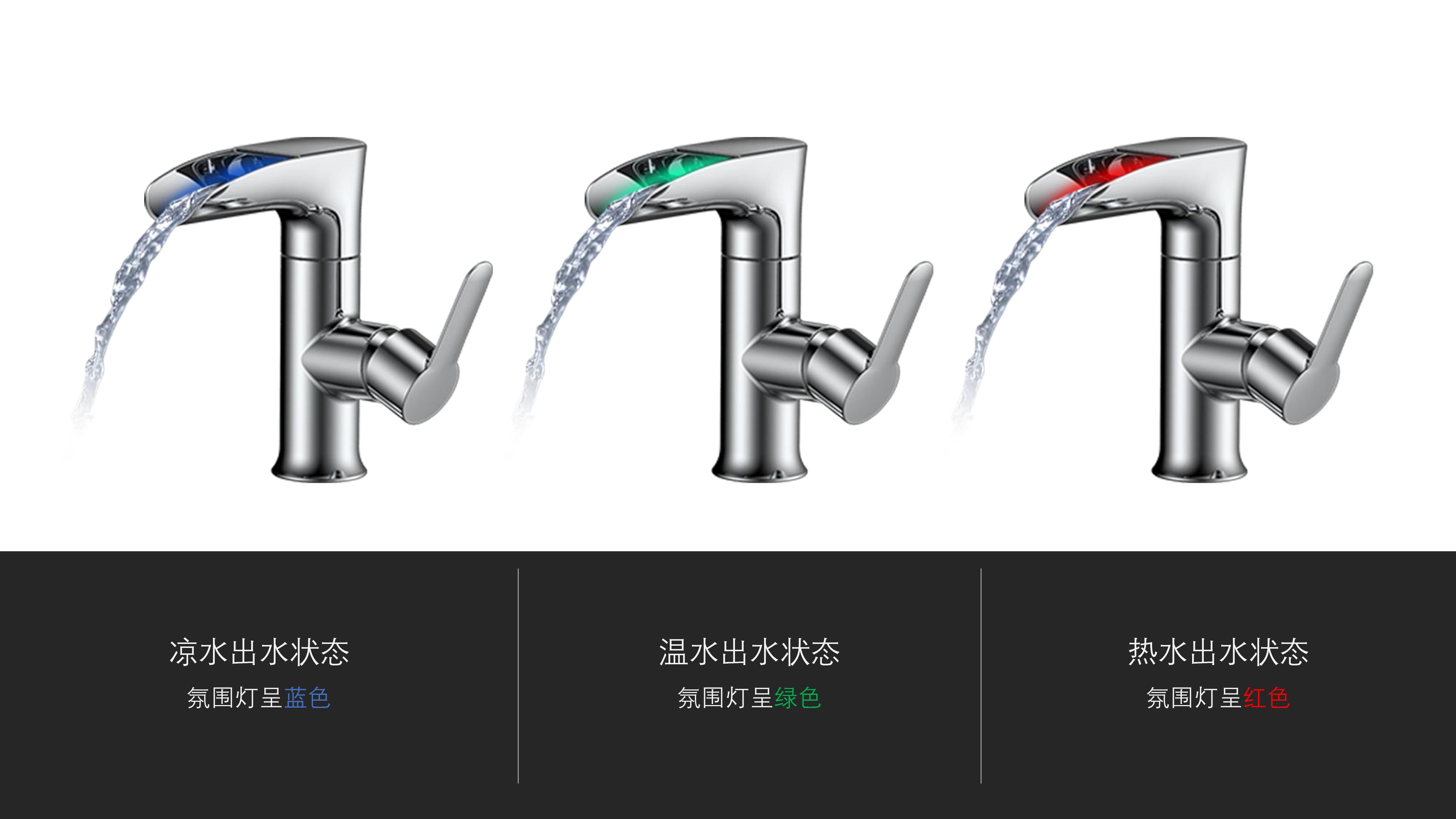 CUPC/ WaterSense/ NSF61/ AB1953(NSF372)認證;簡約時尚設計;加厚陶瓷閥芯,開合順暢,有效防滴漏;LED三種顏色-涼水呈藍色、溫水呈綠色、熱水呈紅色